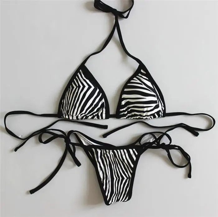 Lady's holiday beachwear sexy mini micro string halter ties brazilian push up scrunch butt striped bikini set Good version, good fabricDouble lining,No see throughComfortable for daily usePerfect for OOTDPerfect for SunbathingPerfect for Beach and SwimmingPerfect for Relaxing