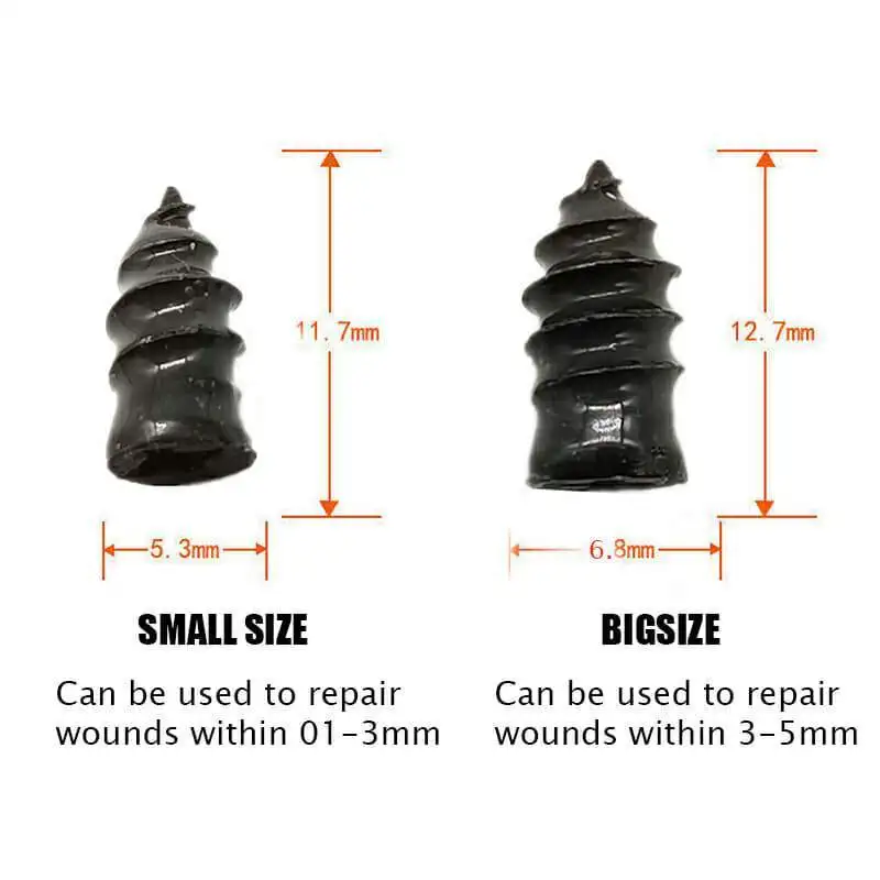 Внутренний диаметр менее 5 мм, отсутствие повреждений шин, отсутствие утечки воздуха. Просто вставьте гвоздь в рану шины для завершения простой и эффективной работы по ремонту шин.