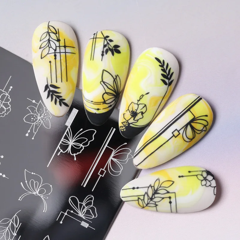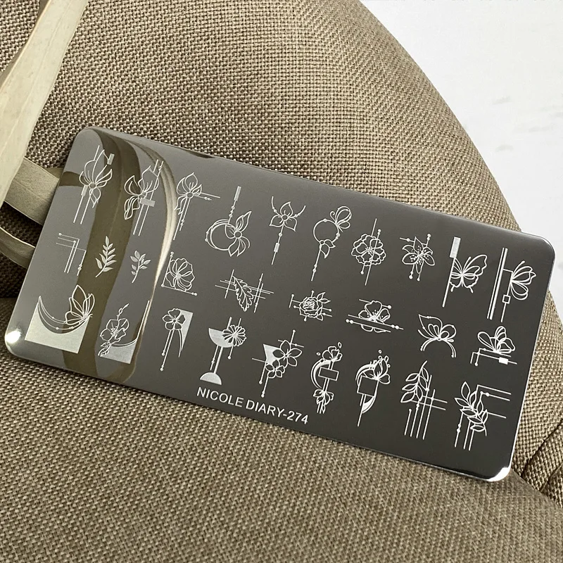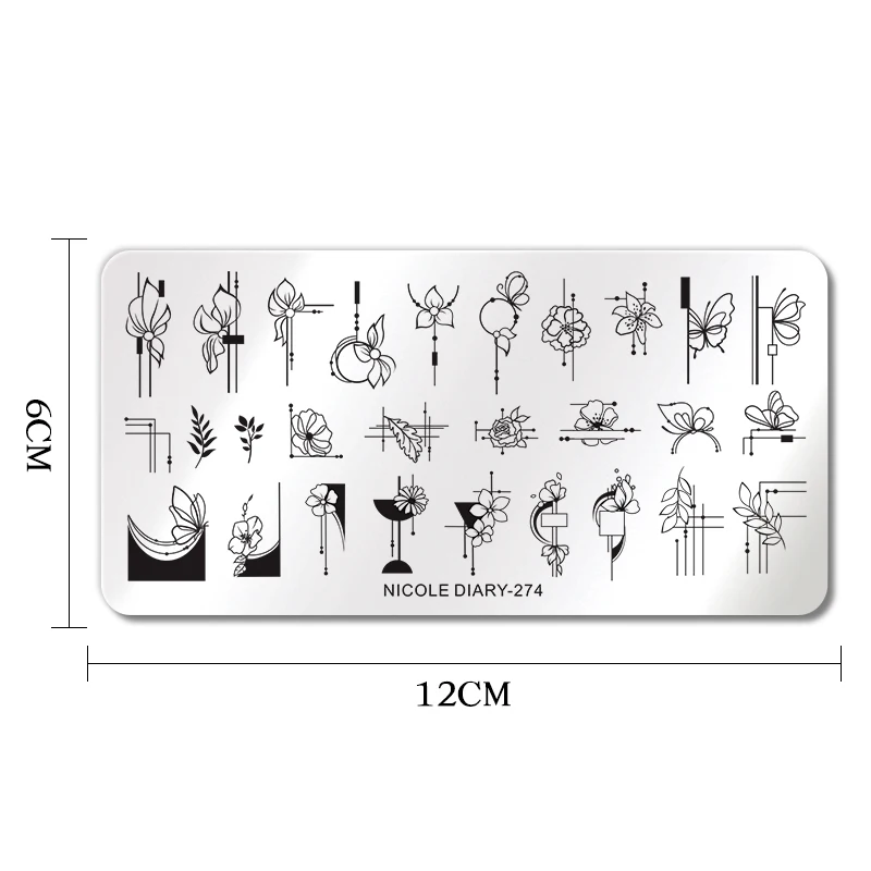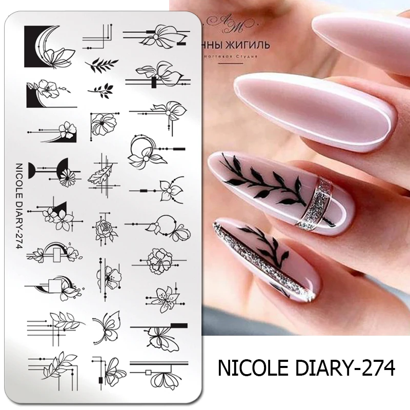 Трафареты NICOLE DIARY для маникюра, штамповочные пластины с полосками, цветами, инструменты для ногтей