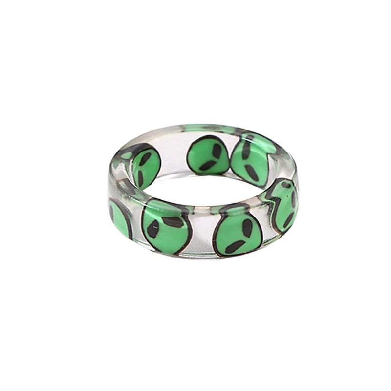 HUANZHI 2021 новые милые винтажные зеленые кольца из смолы инопланетянин Инь Янь креативная Мода для женщин Летняя распродажа Ювелирные изделия Подарки