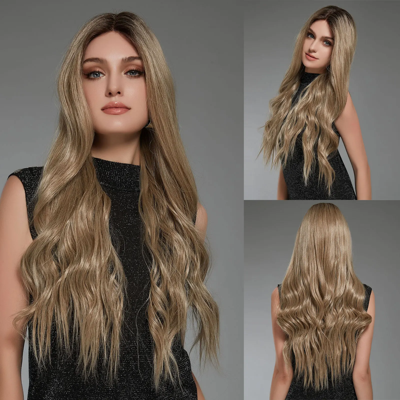 Длинные Синтетические парики для женщин, светлые, естественные волны