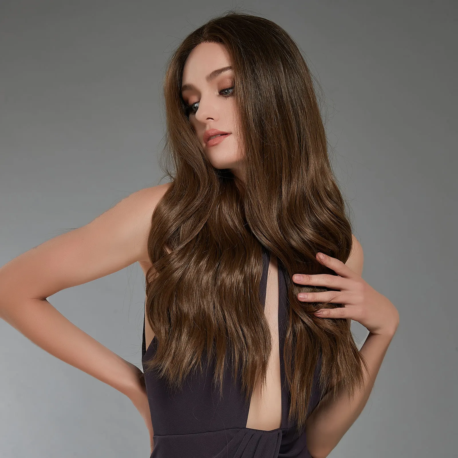 EASIHAIR, длинные темно-коричневые парики из синтетических натураль...