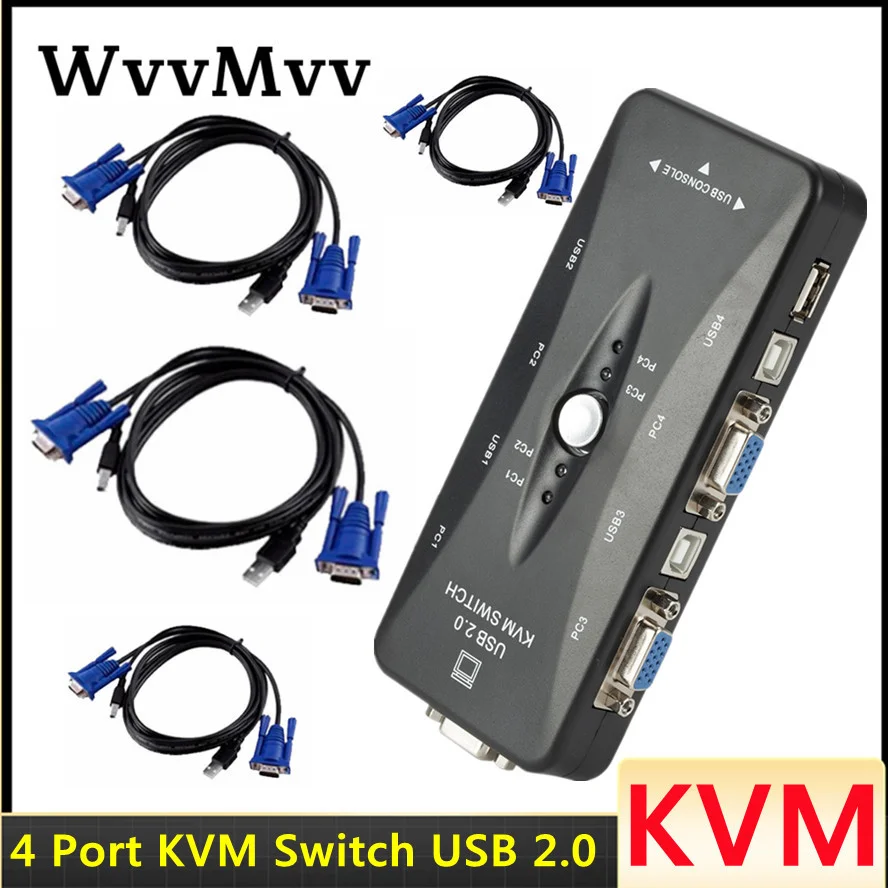 WVVMVV 4-портовый kvm-переключатель USB 2,0 VGA разветвитель для принтера мыши флеш-накопителя коммутатор 1440*1920 VGA переключатель адаптер