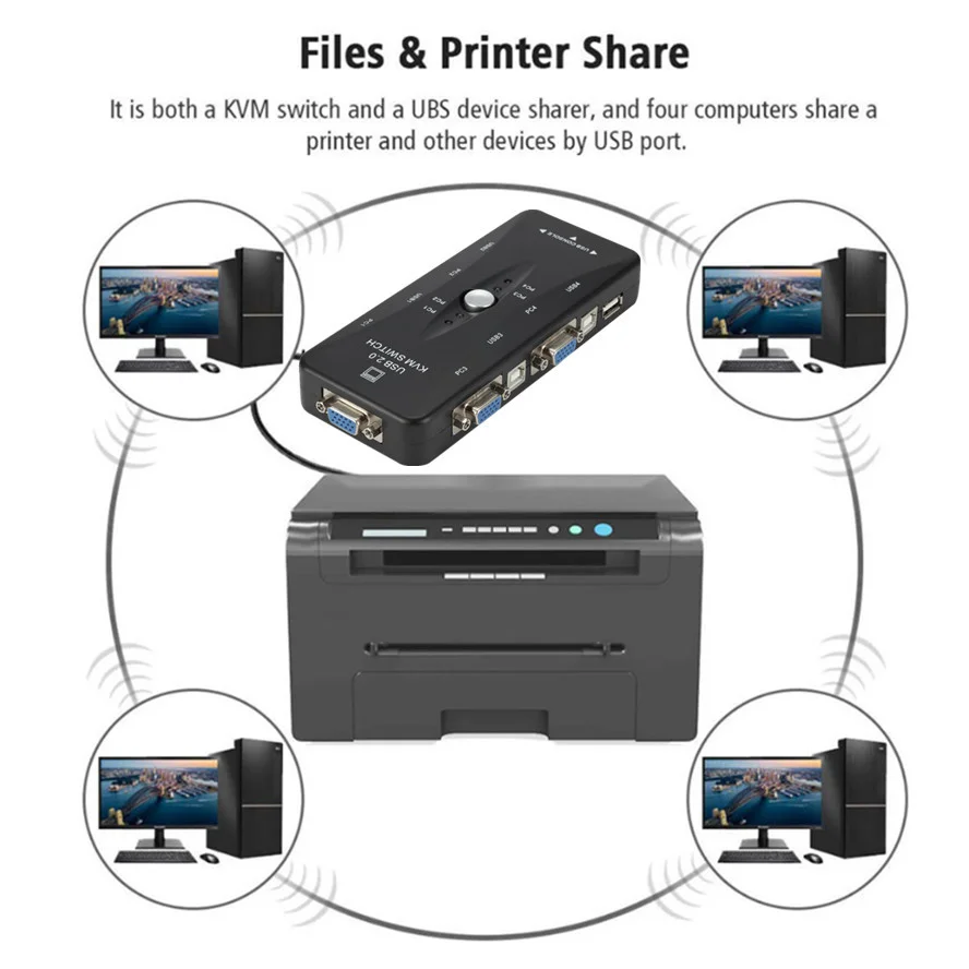 4 порта KVM переключатель USB 2,0 VGA сплиттер принтер Мышь Клавиатура Pendrive Share Switcher 1920*1440 VGA переключатель коробка адаптер
