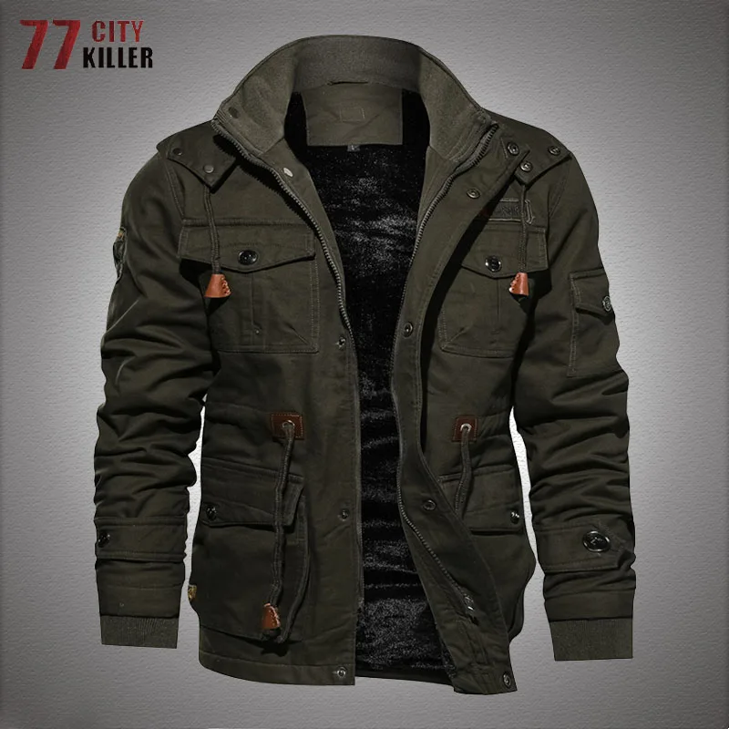 Зимняя Флисовая теплая мужская куртка, Толстая Повседневная ветровка с капюшоном в стиле милитари, мужские куртки-бомберы, парки-карго, верхняя одежда, мужская куртка