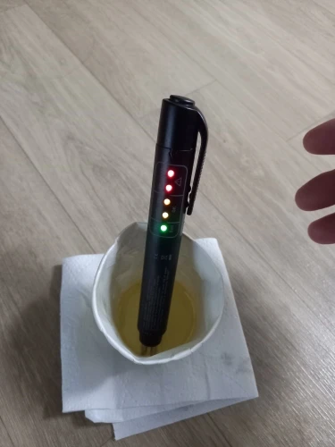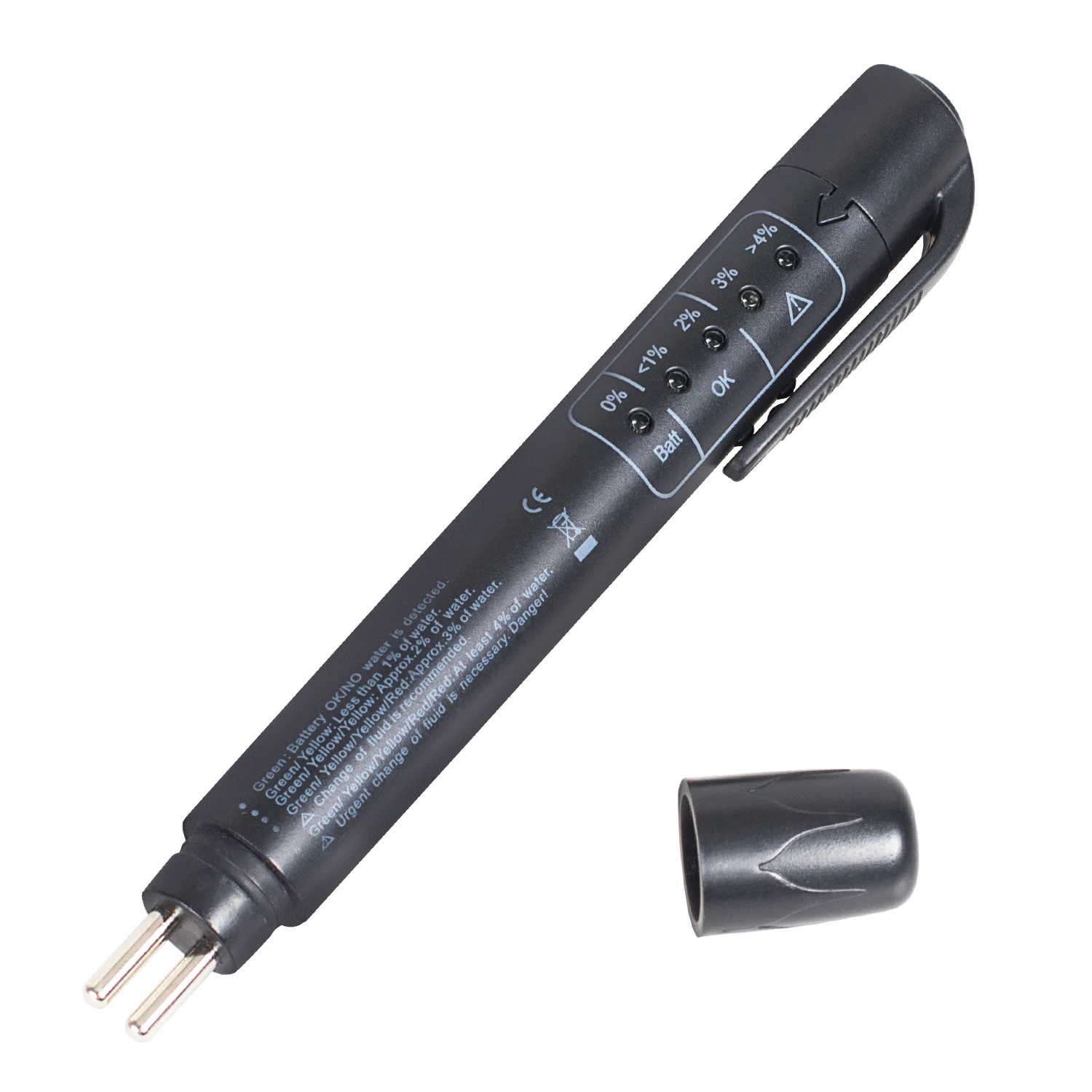 Ручка обнаружения тормозной жидкости основана на изменении проводимости для определения влажности тормозной жидкости. Это показывает? Четко степень влажности, содержащаяся в светильник-излучающем диоде, высокое содержание влаги приведет к более низкой температуре кипения,? Влияет на эффективность торможения.