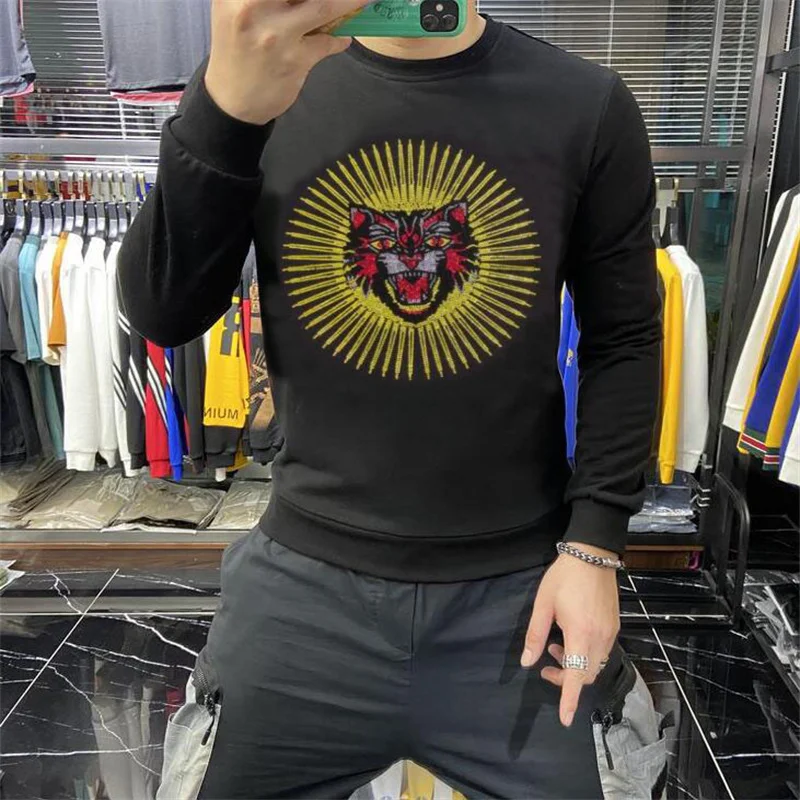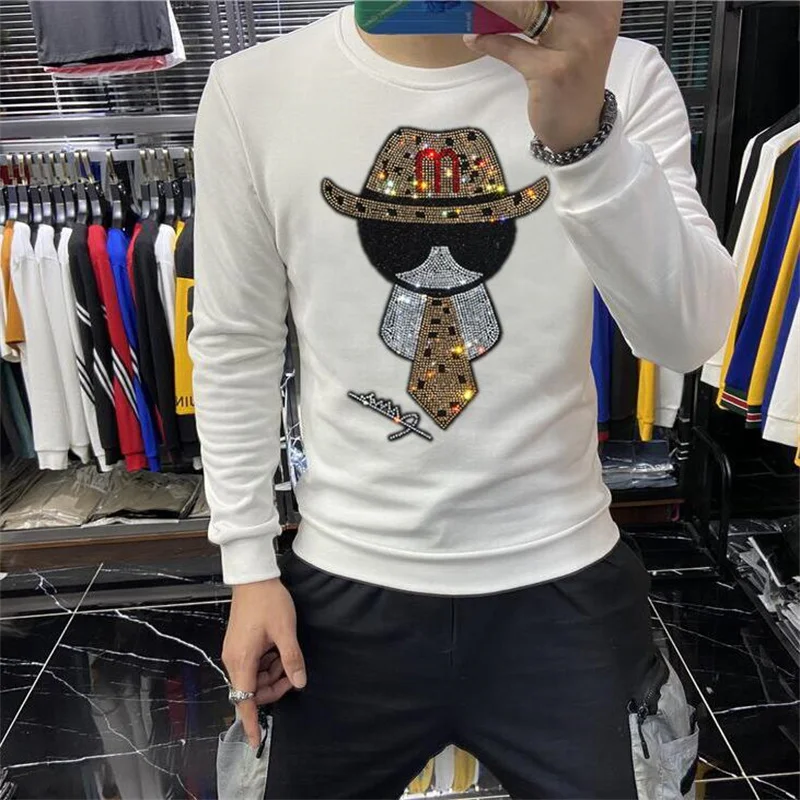 Стразы, мужские толстовки, уличная одежда, теплый мужской свитер с ...