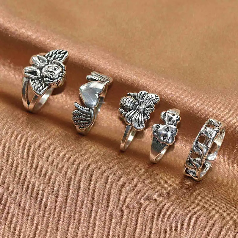 Кольцо женское, в готическом стиле, с черепом, цветком, ангелом, в стиле хип-хоп