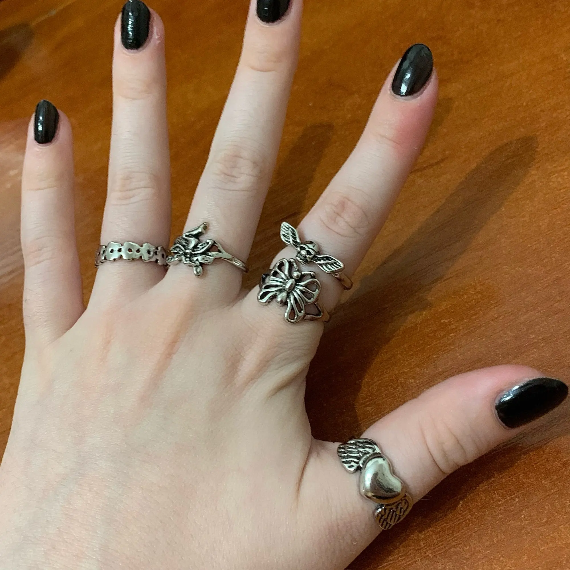 Чудесные колечки! Немного испачканы чёрной краской маленькие кубики, но они настолько маленькие, что я не обращаю на это внимание. Пока на коже не оставляет следов, выглядит красиво и качественно - за такую цену самое то. Дополню отзыв если что-то случится, а пока советую. Пришли очень быстро!
