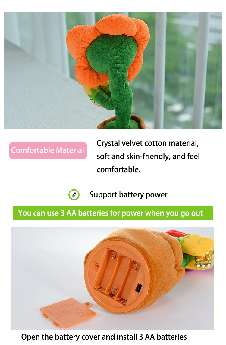 [Прост в использовании]: Переключая кнопку, вы можете изменить ее от пения, танцев и имитировать то, что вы говорите с забавными и милыми движениями и тонами. Игрушка-кактус подарит вам и вашей семье радость и веселье.