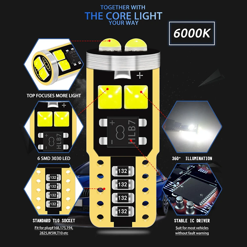 Canbus 6 шт. W5W светодиодный T10 светодиодный 194 168 новые 3030 1...