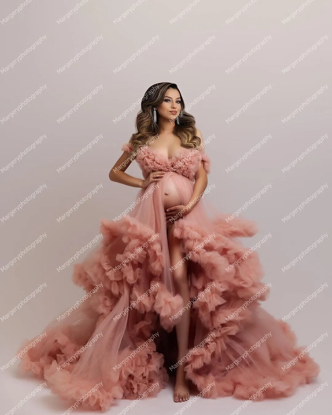 Пышное розовое Тюлевое платье для беременных женщин, длинные халаты...