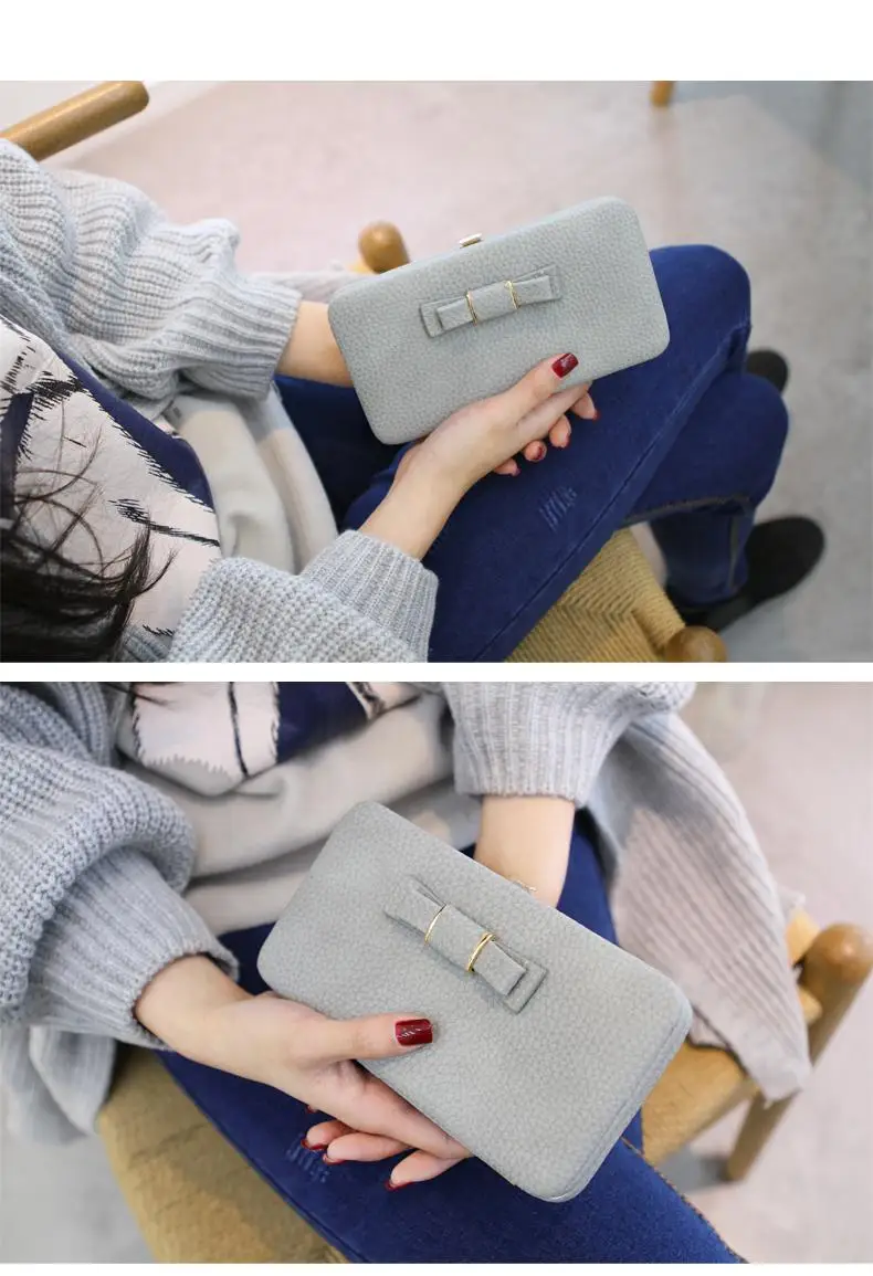 Новый Модный женский кошелек с милым бантом, Длинный кошелек, держатель для телефона и карт, клатч, вместительная сумка