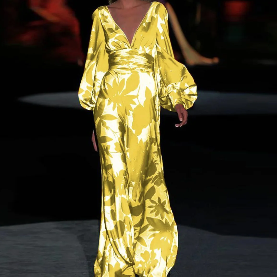 Модные пикантные вечерние платья Ближнего Востока с принтом, глубоким V-образным вырезом, высокой талией и длинными рукавами, женские повседневные Коктейльные Вечерние халаты
