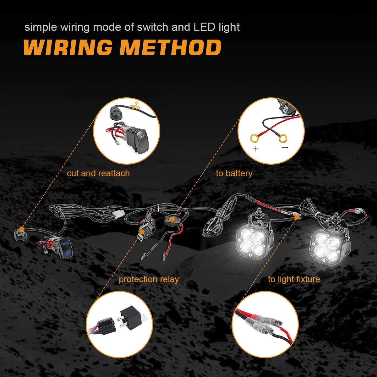 Изготовлен из 14 калибровочной твердости проводки, 10 футов длинный провод достаточно гибкий для крепления в любом местеСверхмощный 14 Калибр проводов, до 300 Вт грузоподъемность, подходит для бездорожья светильник бар, скрытый рабочий светильник s, точечный светильник, туман светильник s и другие вспомогательные лампы, ваш дорогой мощный светодиодный светильник s заслуживает превосходного качества!