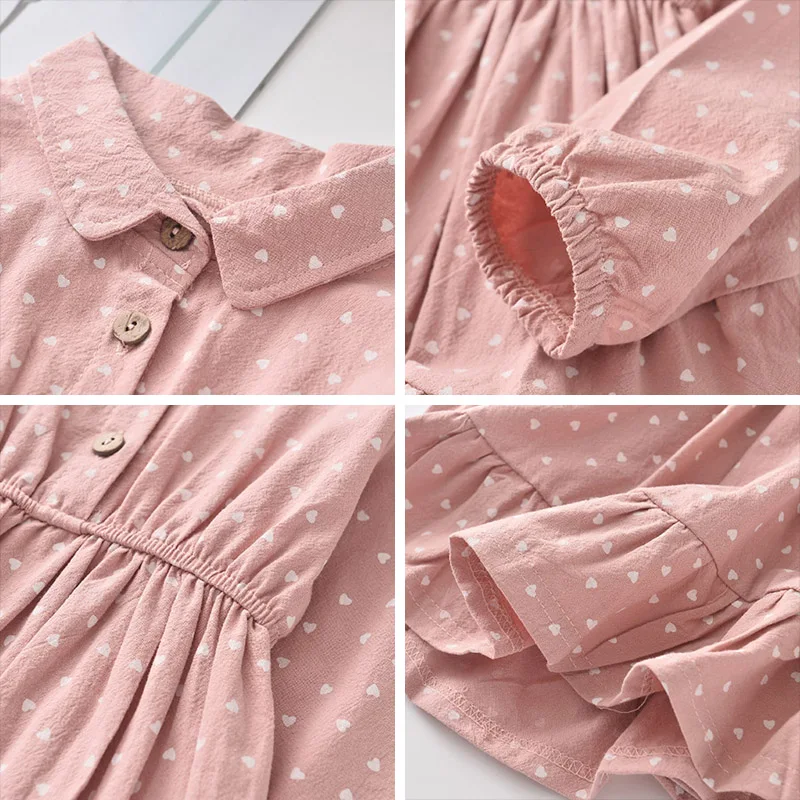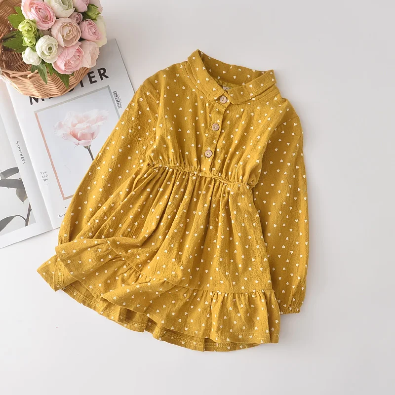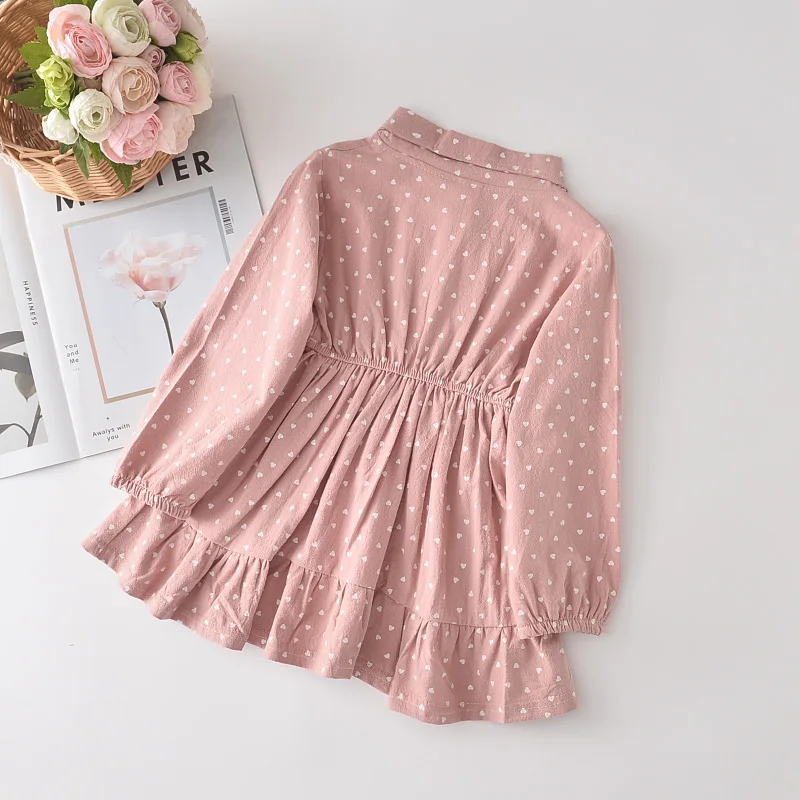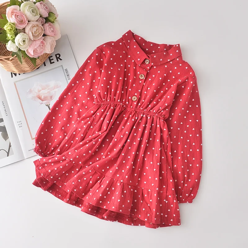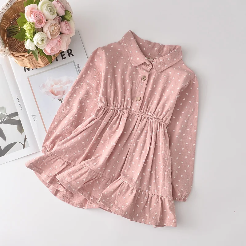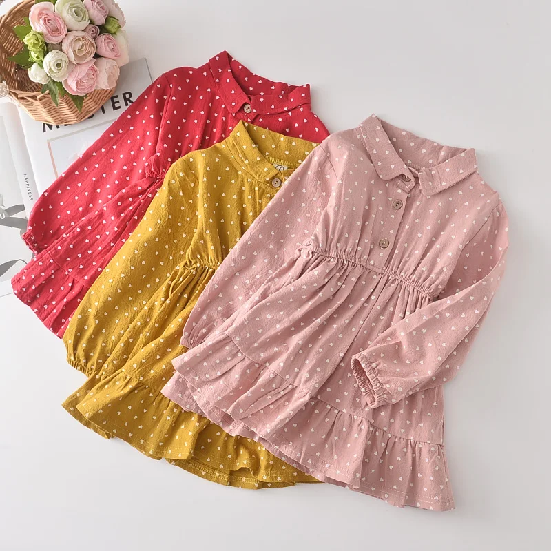 Платья для маленьких девочек, новинка 2020, осеннее платье для маленьких детей с длинным рукавом и отложным воротником, детская одежда с любовным рисунком