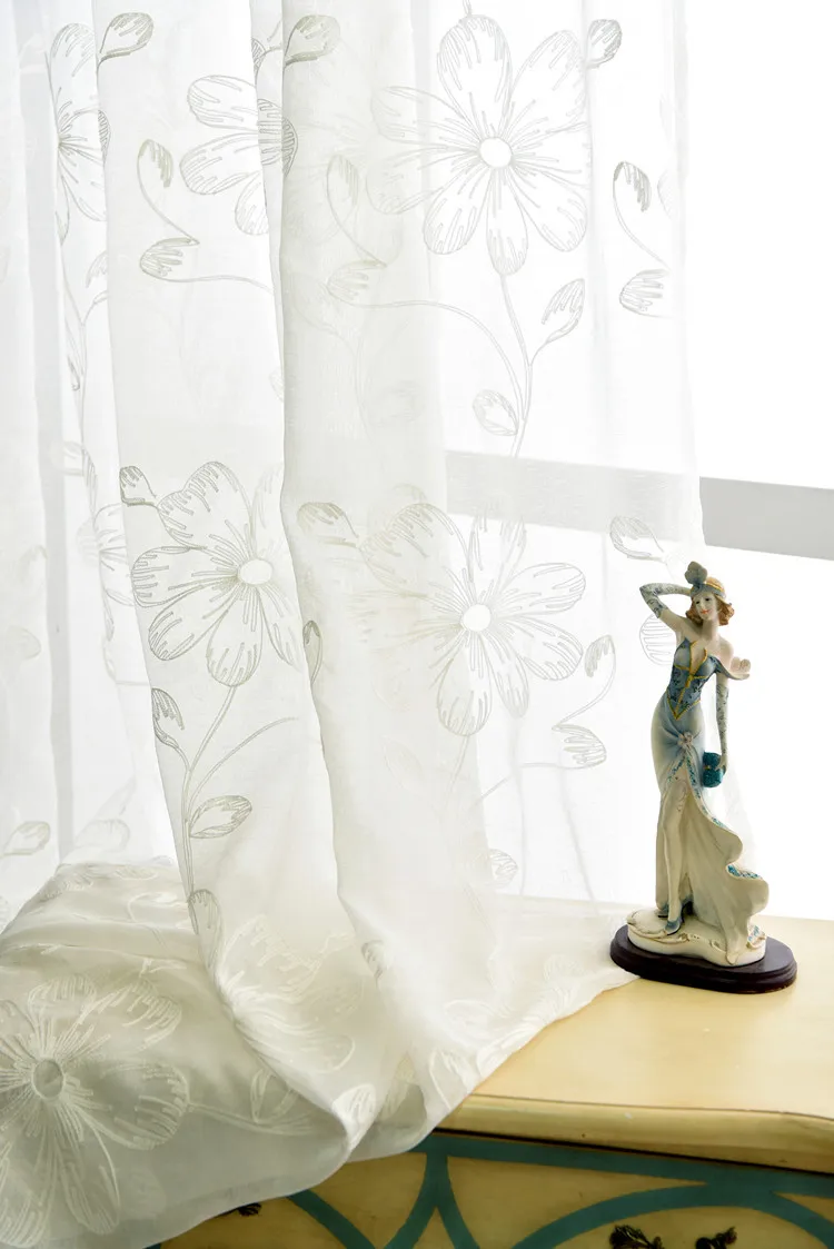 Корейские прозрачные Занавески s для гостиной, белые вышитые тюлевые Оконные Занавески для спальни, прозрачные оконные занавески с цветочным узором