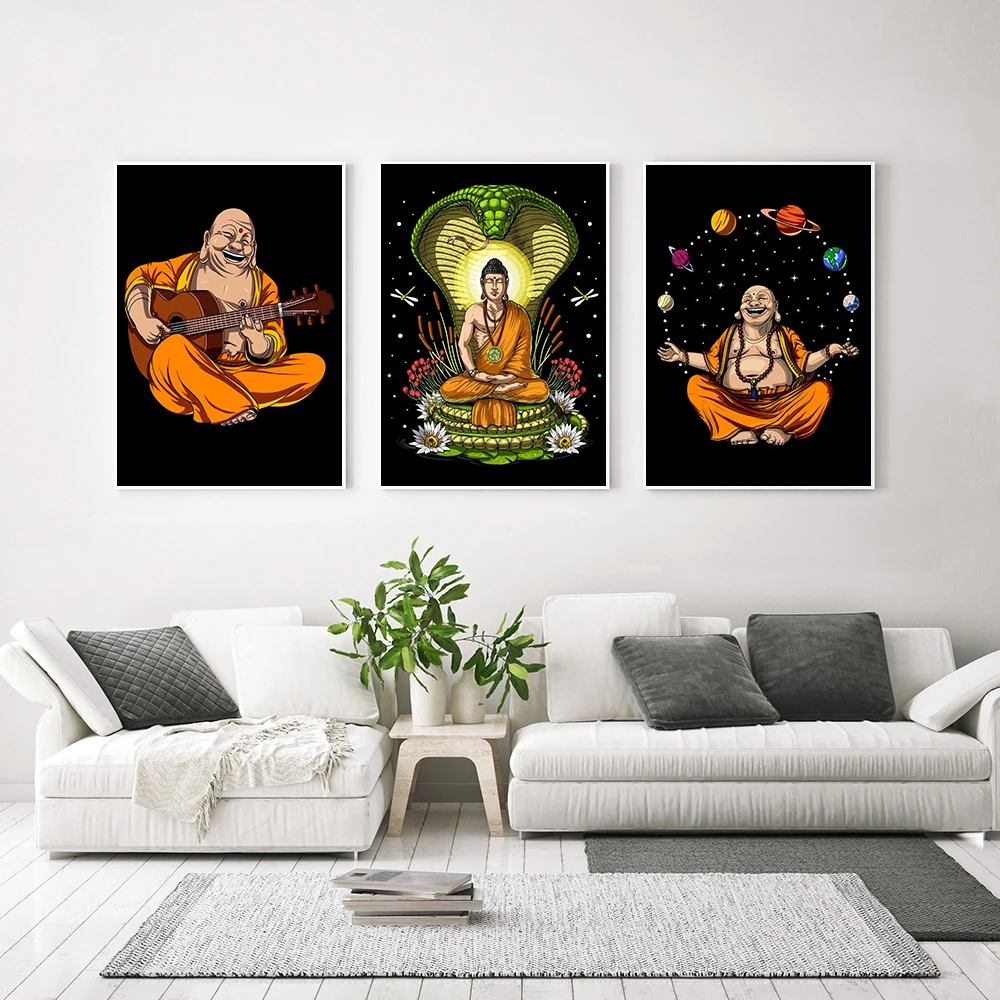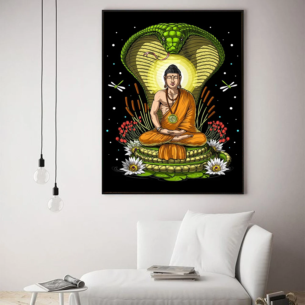 Настенная картина Будда гитара Кобра медитация на холсте домашний декор плакат Будда Космическая живопись для украшения гостиной