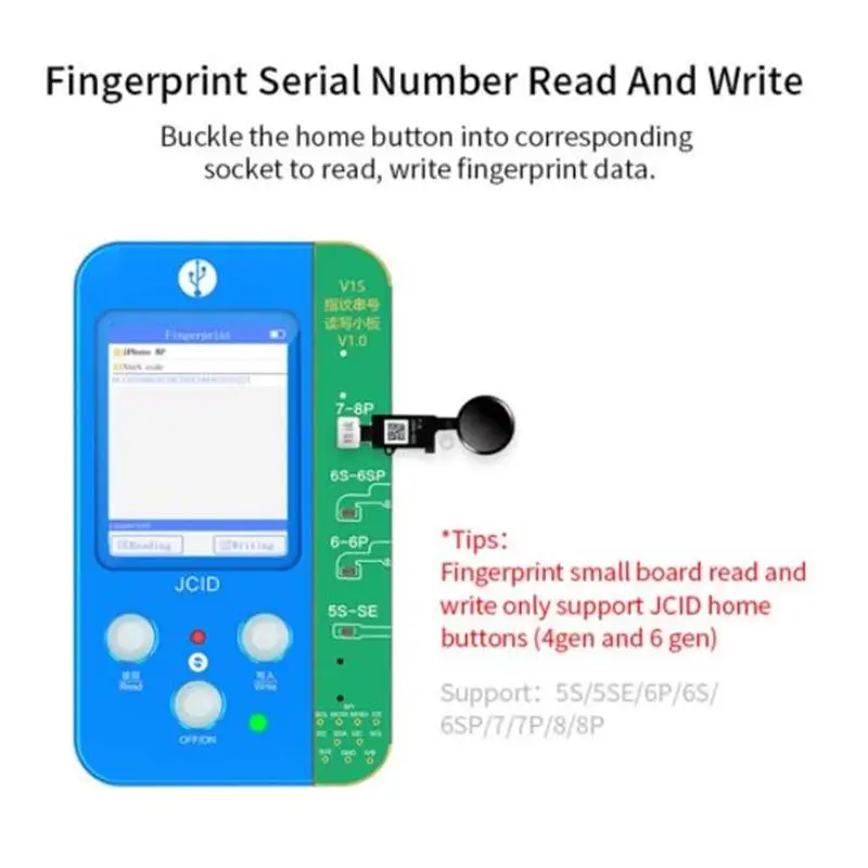 Плата для отпечатков пальцев: автоматически считывает серийный номер отпечатка пальца телефона, поддерживает запись серийного номера отпечатка пальца в кнопку «Домой» JC