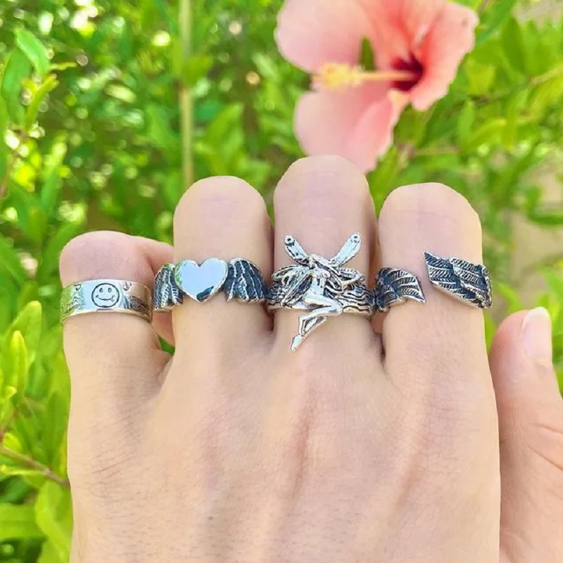 Женские кольца в стиле панк, готика, Череп, крылья, ангел, кольца серебряного цвета в стиле хип-хоп, с бабочкой, сердцем, модная одежда для подарка
