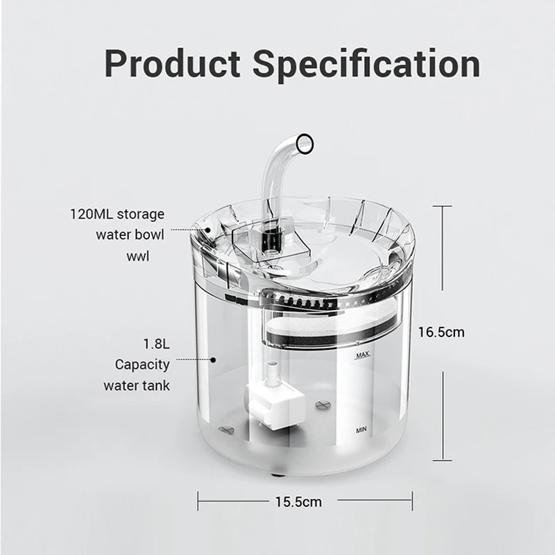 Бесшумный насос уникальной конструкции оснащен специальной присоской для снижения уровня шума до минимума.Фонтан для домашних животных изготовлен из пищевого поликарбоната, экологически чистый, нетоксичный, без запаха и прочный. Простая БЫСТРОРАЗЪЕМНАЯ конструкция предназначена для легкого снятия и очистки.Емкость 2 л, нет необходимости часто наполнять воду, может удовлетворить потребности в питье кошек, собак, птиц и других домашних животных различных размеров. Не нужно беспокоиться о том, что ваши питомцы не получат свежего напитка, когда вы на работе.2 режима потока воды (режим крана/режим фонтана), обеспечивающие чистую проточную воду, делают ваших питомцев счастливее и здоровее.Полностью прозрачный дизайн. Питание от USB-кабеля. Безопасная, Гигиеничная, удобная посудомоечная машина с верхней полкой.