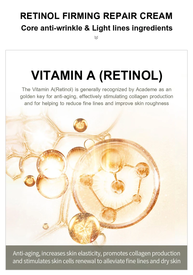 EFFICAC Y: водное ощущение и шелковистая гладкая текстура, в сочетании с аминопропанолом аскорбат фосфатный эфир и полипептидным экстрактом активности, добавляют питательные вещества в слои кожи, сбалансируют влагу и масло кожи, с Ретинол ретинил эфир глубоко питает и восполняет кожу, улучшает тонкие линии лица, тусклость, сухость и другие проблемы с кожей, омолаживает кожу с молодой упругостью, птицей и увлажнением Посмотрите
