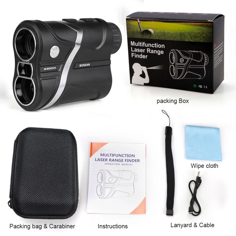 1 * BOSEAN дальномер 1 * Прочная переноска Cas 1 * Руководство пользователя на английском языке 1 * USB кабель для зарядки 1 * ремешок на запястье 1 * ткань для объектива
