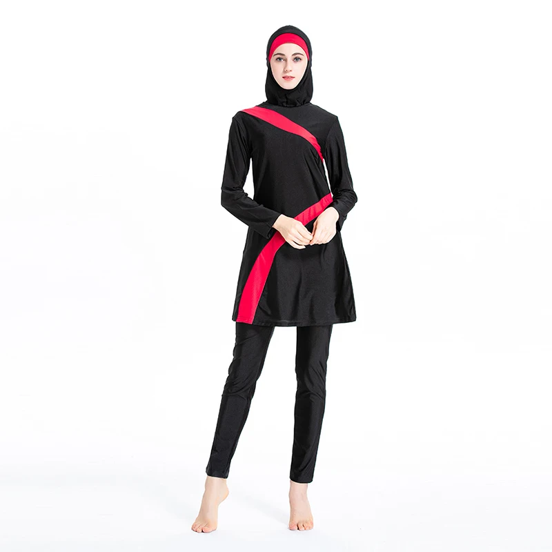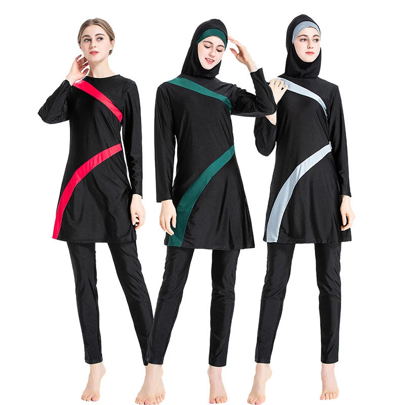 Недорогой Мусульманский купальник, 3 шт., спортивный купальник, комплект, спортивный купальный костюм, мусульманская одежда, Женский хиджаб в стиле пэчворк