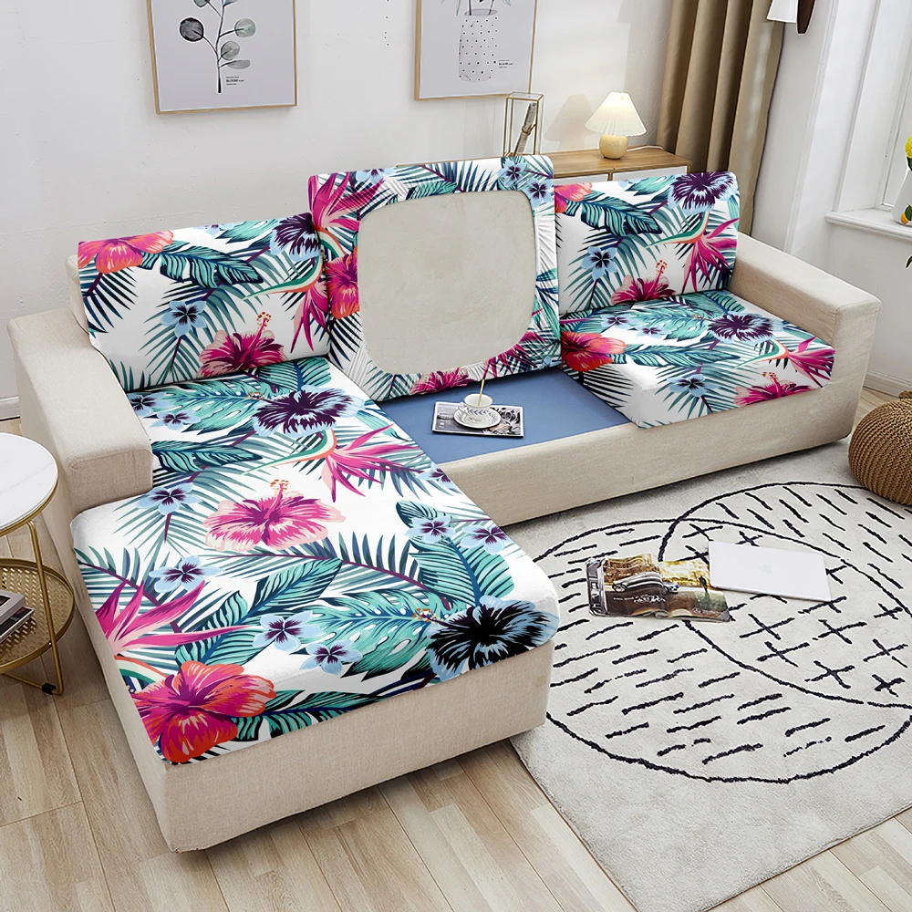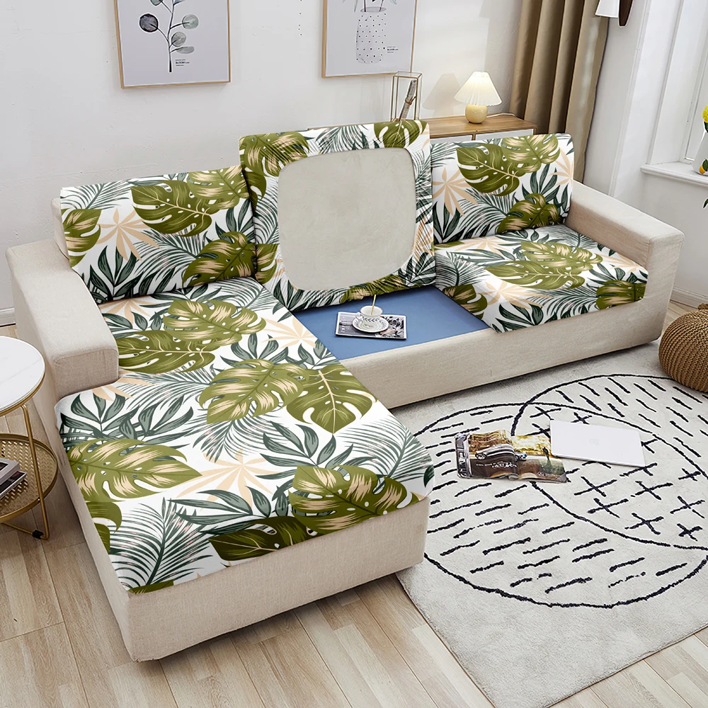 Эластичный чехол для диванной подушки, L-образный, с изображением тропических листьев, защита для 1234 сидений для гостиной