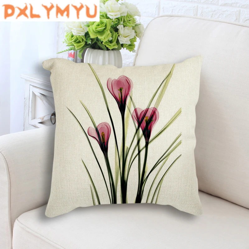 Квадратные декоративные подушки из хлопка и льна, современные декоративные диванные подушки с принтом тюльпанов, цветов, 18 дюймов, для домашнего декора