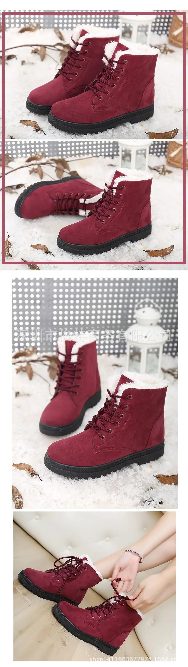 Женские ботильоны из флока, теплые ботинки для снега, зимняя обувь,...