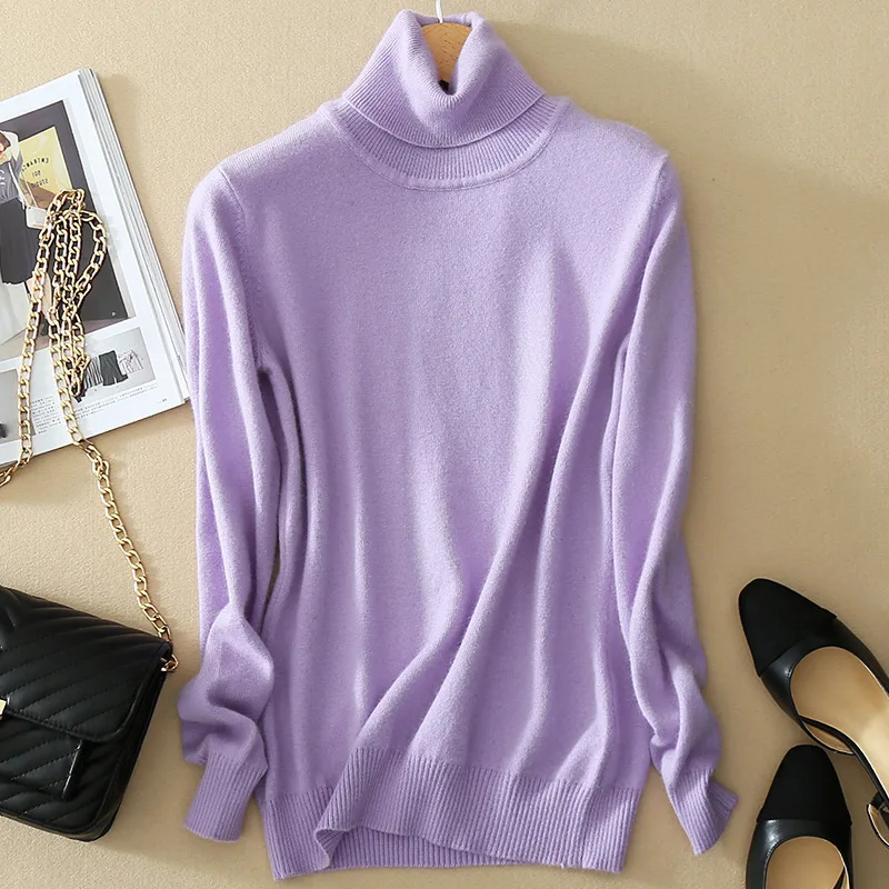 Свитер с высоким воротником, женский зимний шерстяной кашемировый свитер с длинным рукавом, Женский вязаный пуловер, женские свитера 2021
