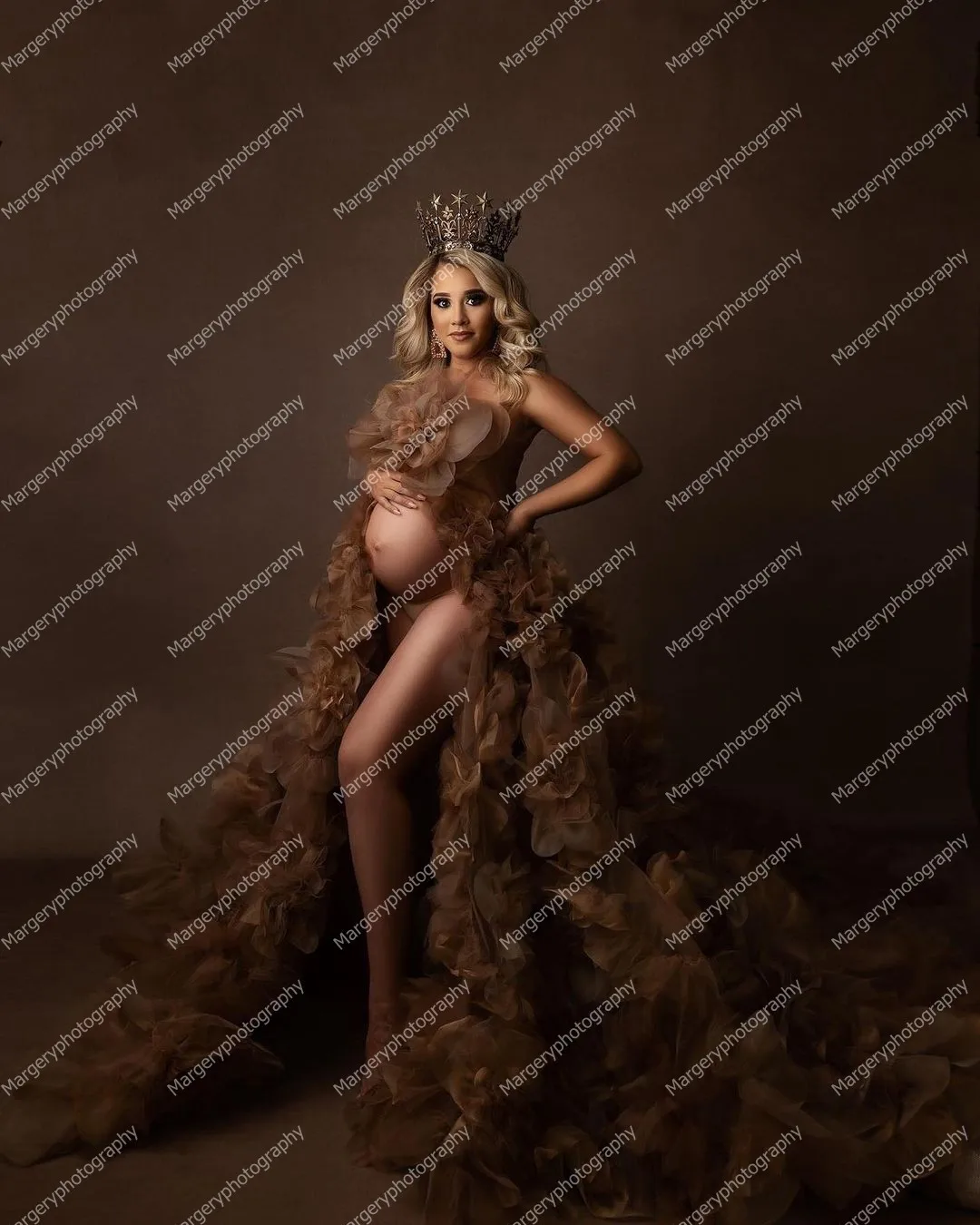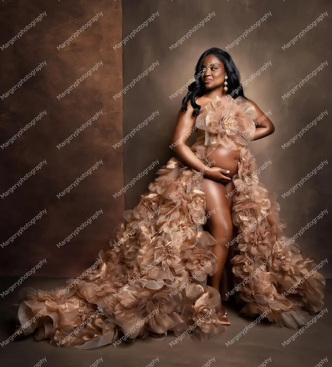Роскошные тюлевые платья Matenrity с цветами, женские платья для беременных без бретелек с высоким разрезом, индивидуальный пошив, большие размеры со шлейфом