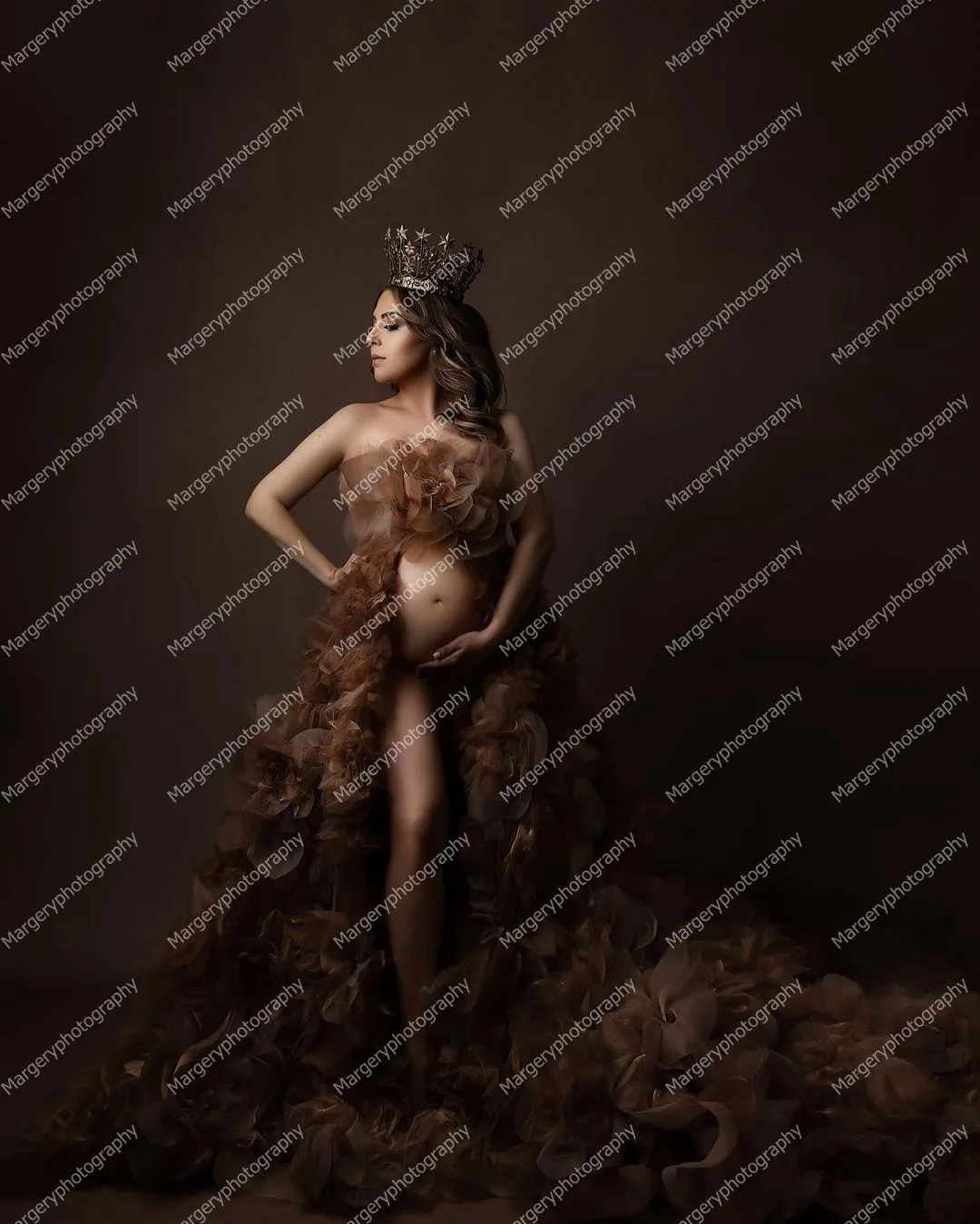 Фатиновое длинное платье для беременных в несколько рядов, фотосъем...