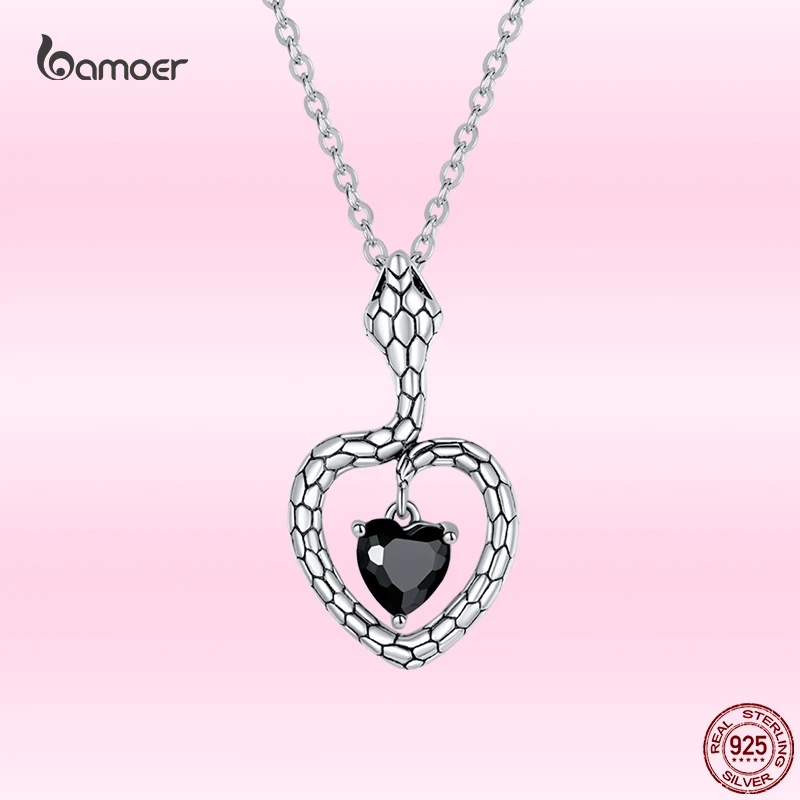 Bamoer креативное ожерелье с медальоном в виде змеи для женщин из стерлингового серебра 925 пробы роскошный черный циркон кулон ожерелье Модные украшения подарок