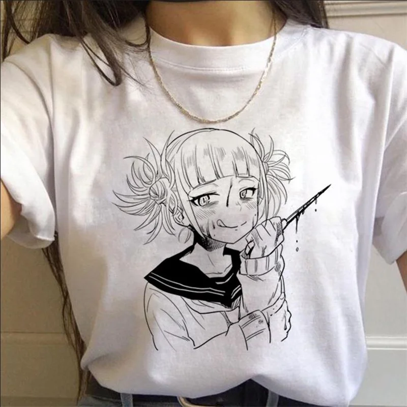 Футболка с рисунком из аниме Моя геройская Академия, кавайная мультяшная химико Тога, графические футболки, летняя футболка с коротким рукавом в стиле Харадзюку для женщин и мужчин
