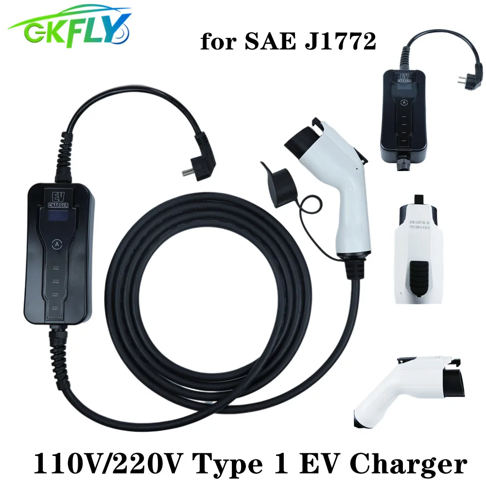 Портативное зарядное устройство GKFLY для электромобилей SAE J1772, тип 1, 8A, 10A, 13A, 16A, умное зарядное устройство для электромобиля переменного тока, тип 1, уровень 2