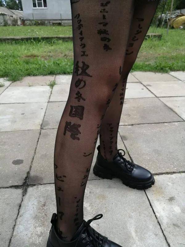 Новинка, женские сексуальные черные высокие Колготки, Чулки с японской надписью, трикотажные сетчатые чулки с рисунком