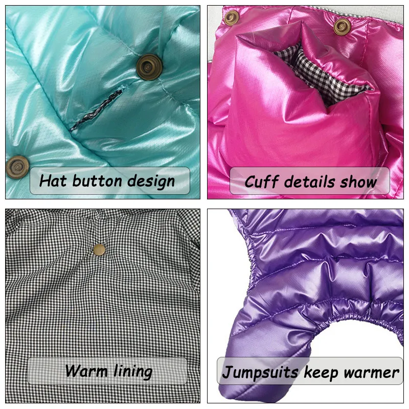 Item Type: Winter Warm Dog JumpsuitMaterials: Cotton+PU nylon spinningSize: 8.10.12.14.16.18Color: Green, Gray, Purple, FushiaFeature: Luxury And Fashion, Keep WarmSuitable: Small, Medium Cats&Dogs, pug, Teddy, Pug, Chihuahua, Yorkshire terrier, Shih tzu, etc.Notice:Warm TipFor the size, there may be 1-3cm Deviation by Manual Measurement.For the color, due to various monitors and lighting conditions, colors may be slightly different from listed photos, please noted, thanks.