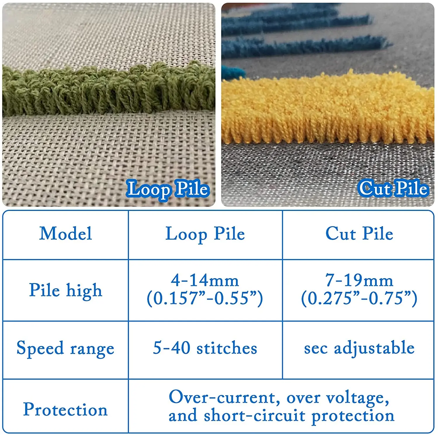 [Удовлетворить различные потребности] скорость этой tufting студии пистолет может достигать 5-40 стежков в секунду, и регулируемая высота ковра 7-21 мм, что повышает эффективность производства в 80-100 раз и экономит больше, чем ручное вязание рабочей силы и времени.