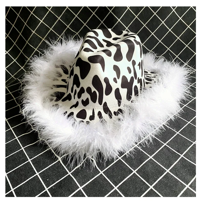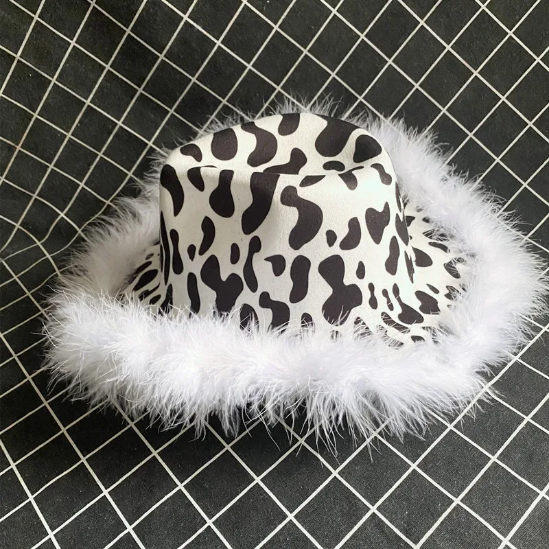 Шляпы федоры с белыми перьями, женские зимние шапки для коров, джаз...