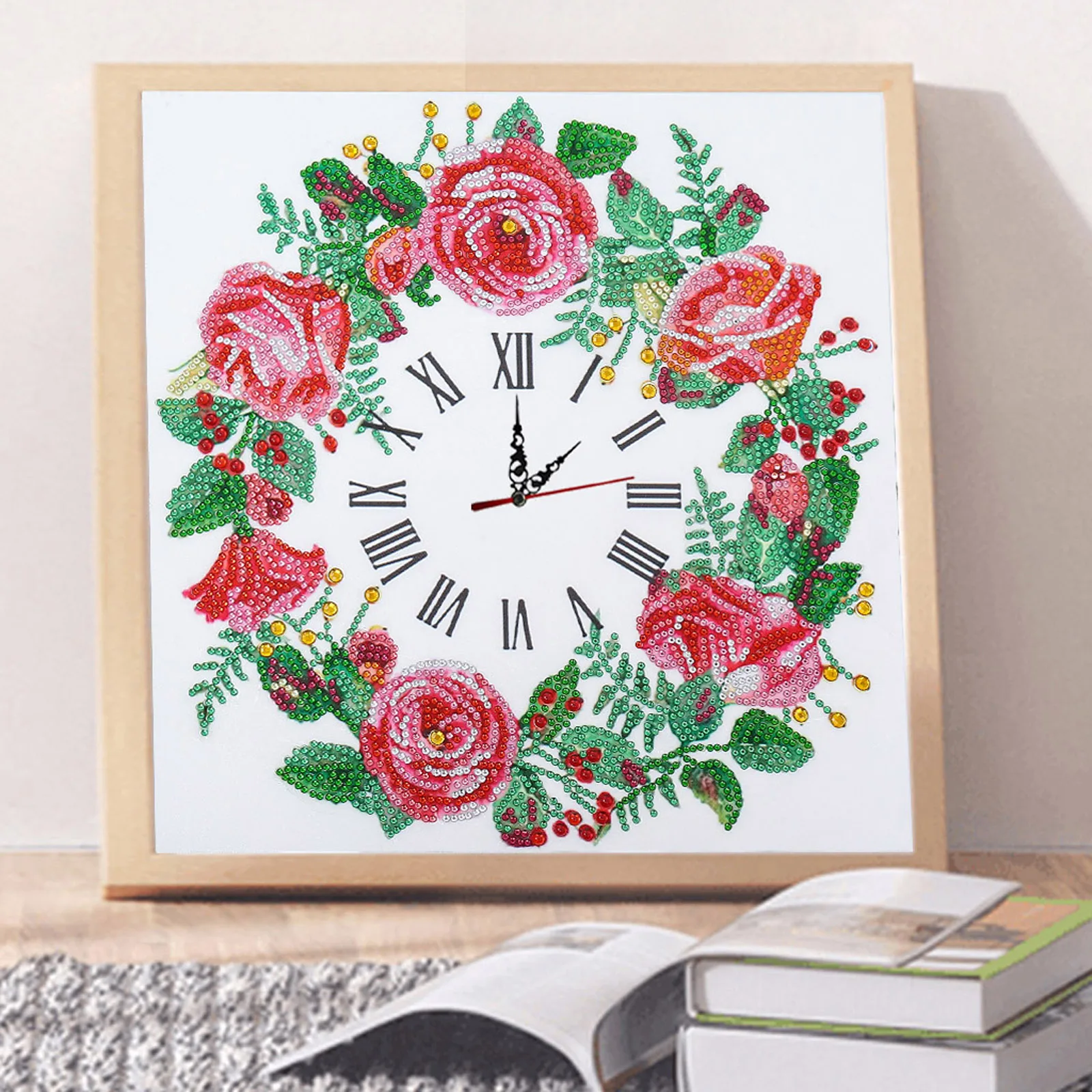 Алмазная мозаика особой формы сделай сам, вышивка крестиком, мозаика, рисунок с цветами, часы, домашний декор