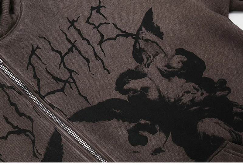 Куртка с капюшоном и принтом ангелов для мужчин и женщин, винтажная...