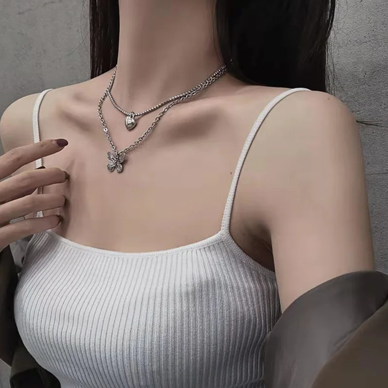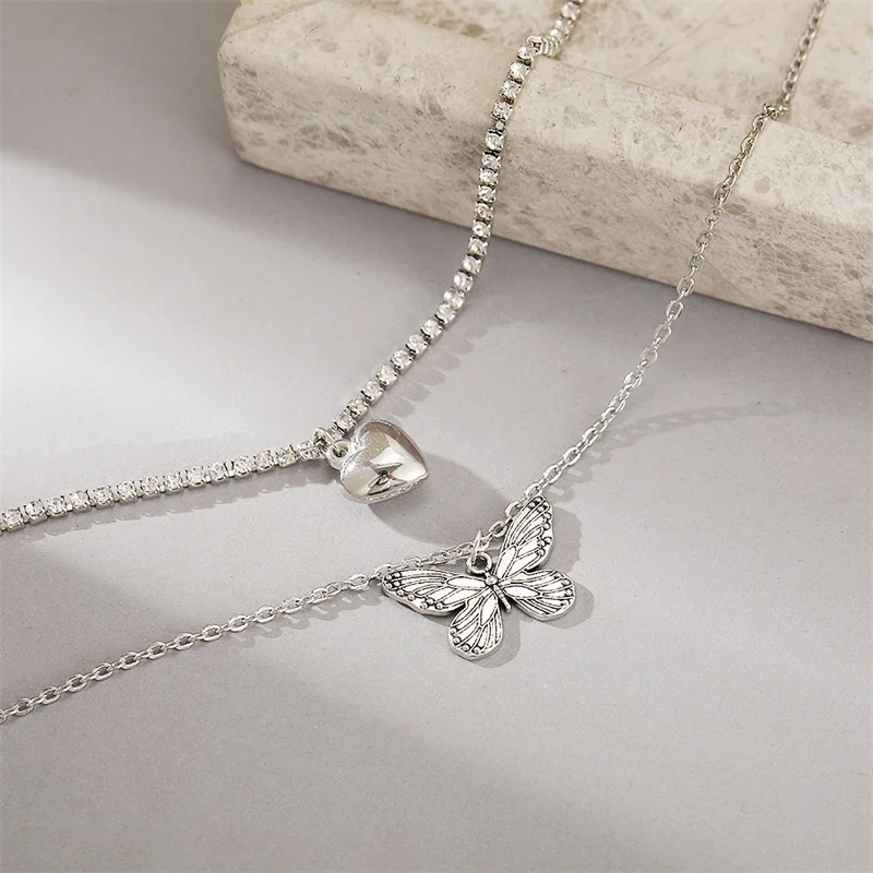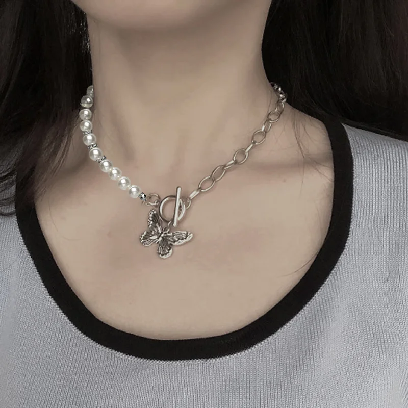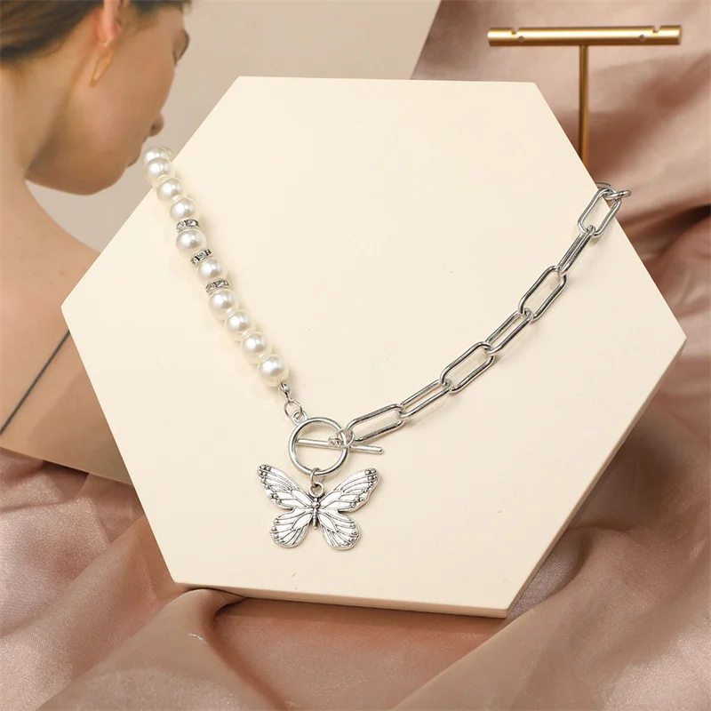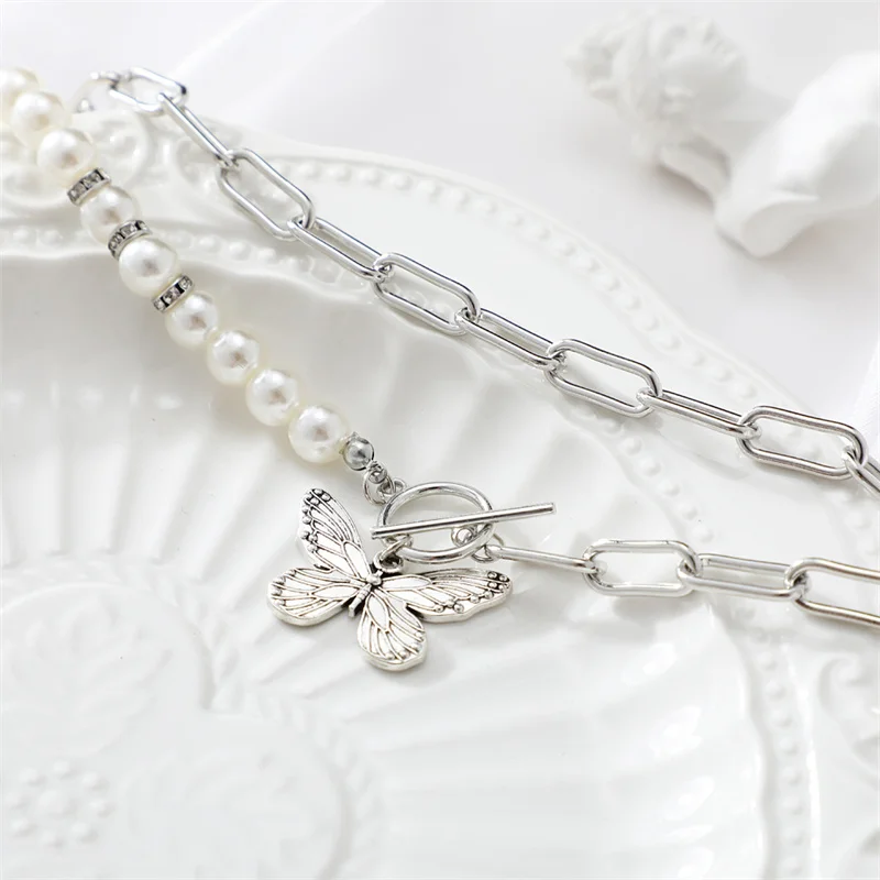 Многослойное ожерелье с подвеской в виде бабочки и сердца для женщин, асимметричное колье-чокер с жемчужинами, креативное свадебное украшение, модная трендовая бижутерия 2021