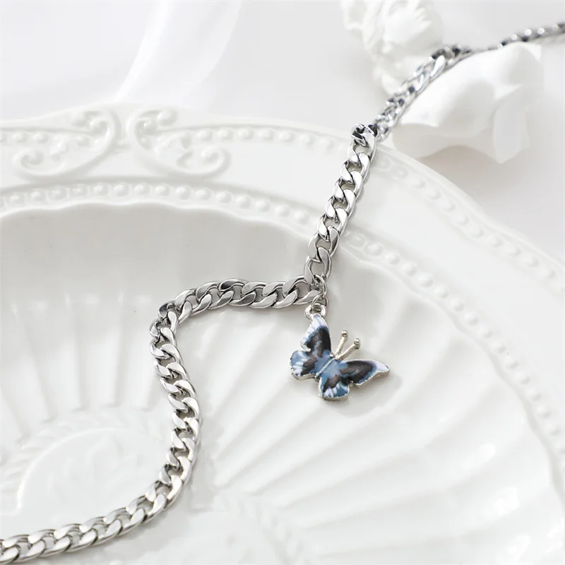 Женское колье-чокер в стиле панк, ожерелье до ключицы с бабочками, ...