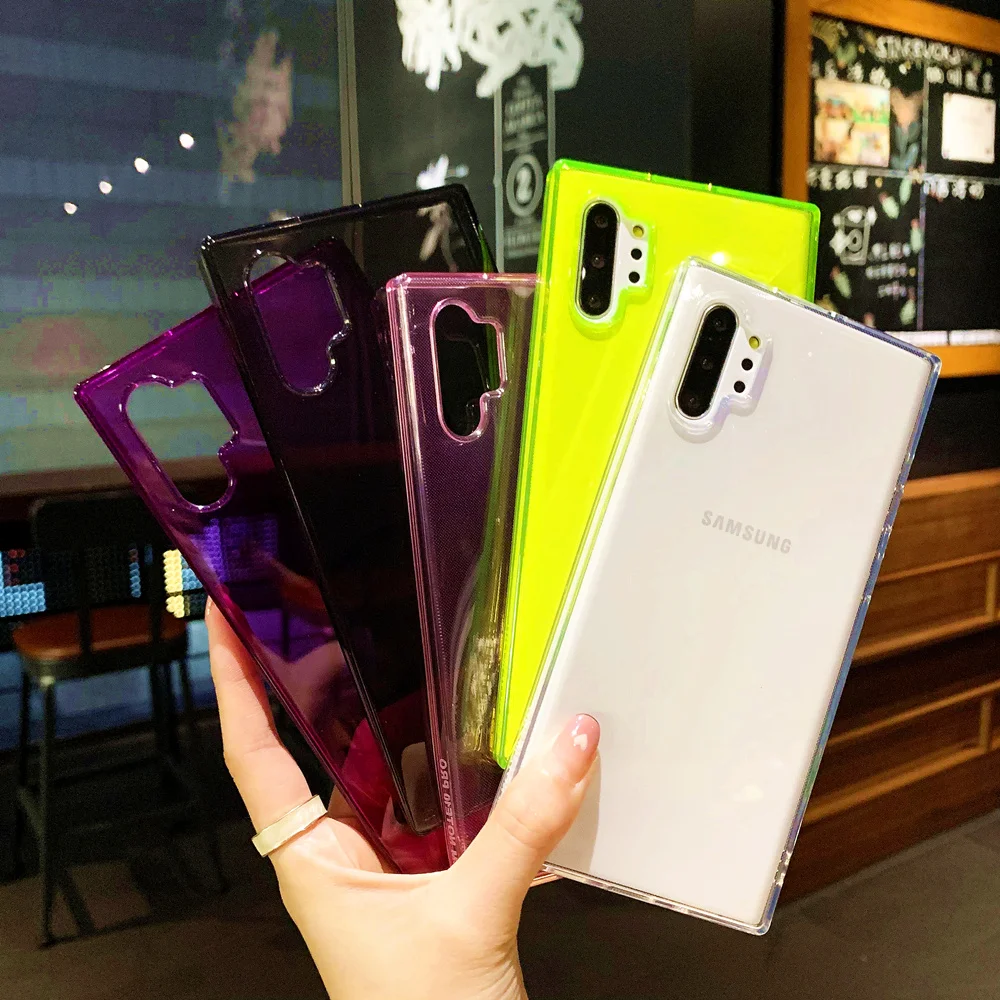 Прозрачный мягкий силиконовый чехол для телефона Samsung Galaxy S21 S20 FE S10 S9 Plus Note 10 20 Ultra S10E квадратный чехол ярких цветов