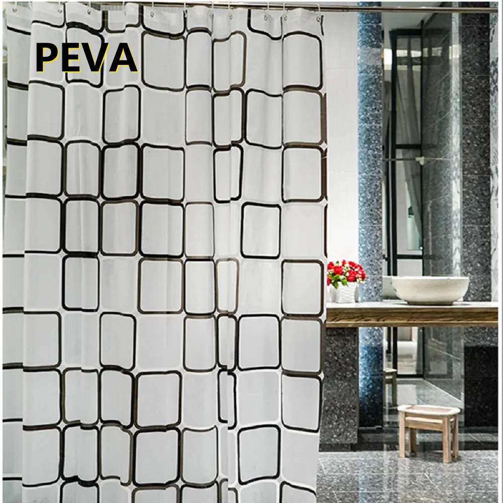 Водонепроницаемая занавеска для душа, занавеска из полиэстера черного и белого цвета в современном стиле для ванной комнаты, украшение с крючками