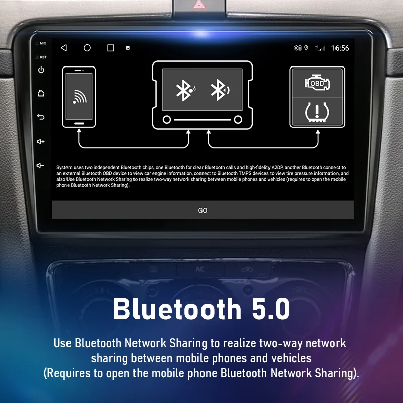 Удовлетворяет потребности пользователей в усовершенствовании автомобильного аудиоВ то же время можно настроить объемный звук, что позволяет погрузиться в красивую музыку.Bluetooth 5,0: сверхдальний прием сигнала Bluetooth, стабильный сигнал, защита от помехВстроенная настройка по умолчанию составляет 48 эквалайзеров, и объемный звук можно настроить одновременно, позволяя вам погрузиться в замечательную музыку.