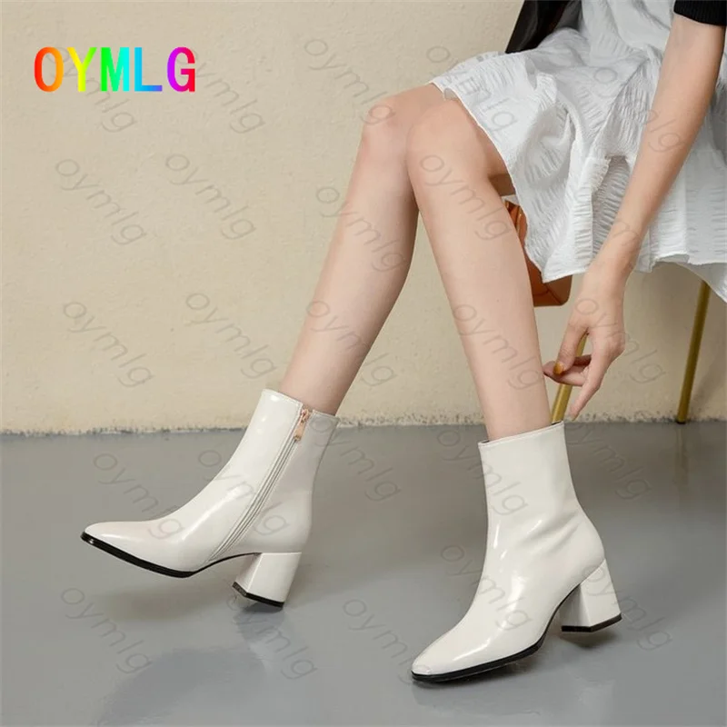 Женские ботинки из лакированной кожи, на высоком каблуке, с молнией сбоку