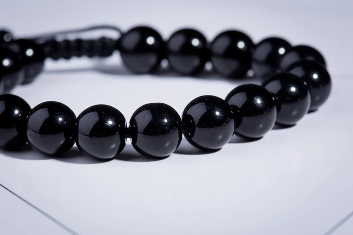 Браслет из натурального обсидиана с защитой от усталости, Круглый м...